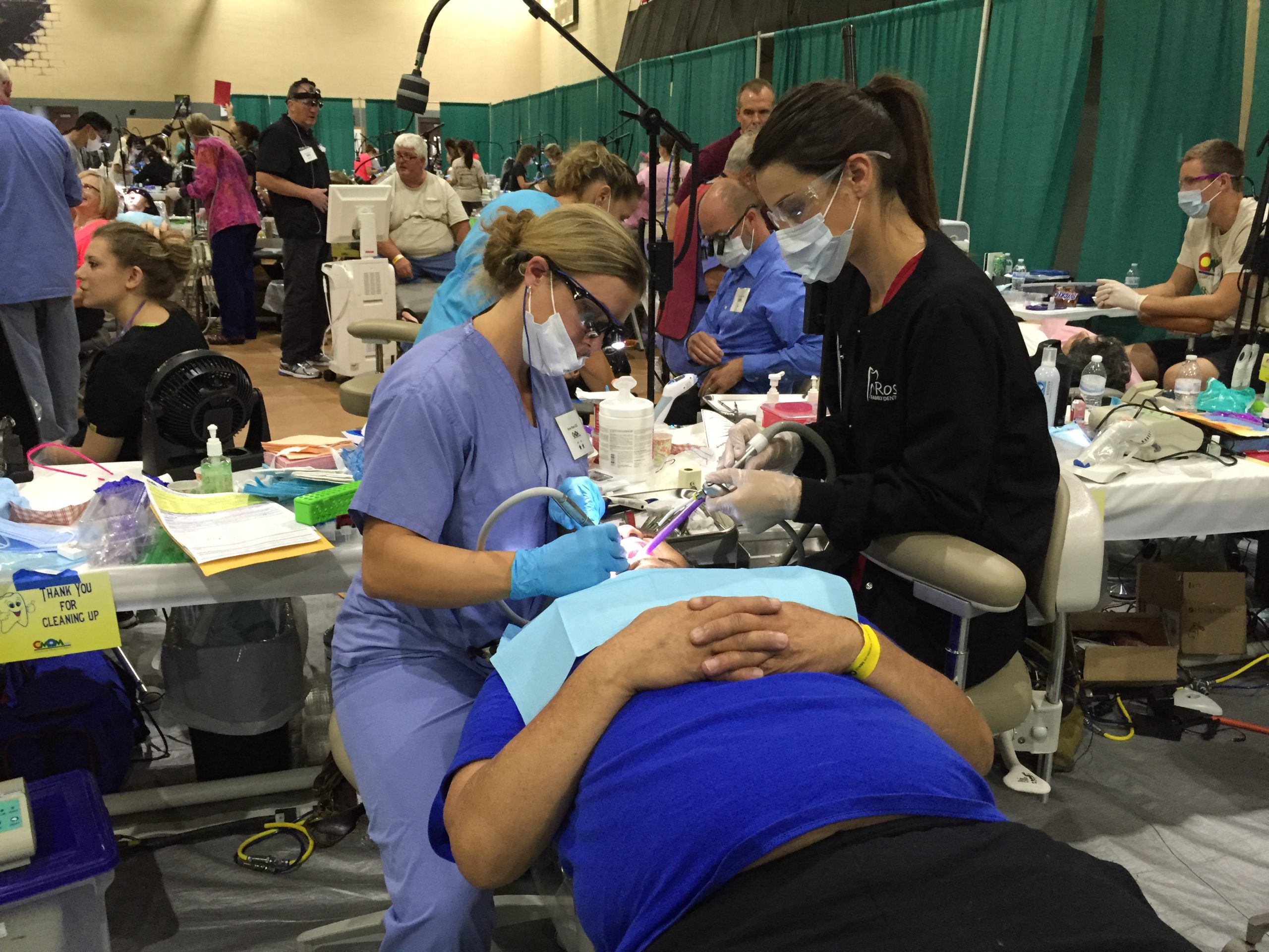 The event was two days long this year, August 14th and 15th. The team from Ross Family Dentistry volunteered Friday August 14th. We arrived at Harrison School in Canon City at 6 a.m. and left at 6 p.m. Dr. Ross saw roughly 15 patients, and the grand total of dental treatment donated by all participants was over $1,000,000! That’s pretty impressive and shows just how much need there is in our state! Ross Family Dentistry is honored to be part of such a wonderful event and proud to be included in an organization that provides people with the great gift of a smile!