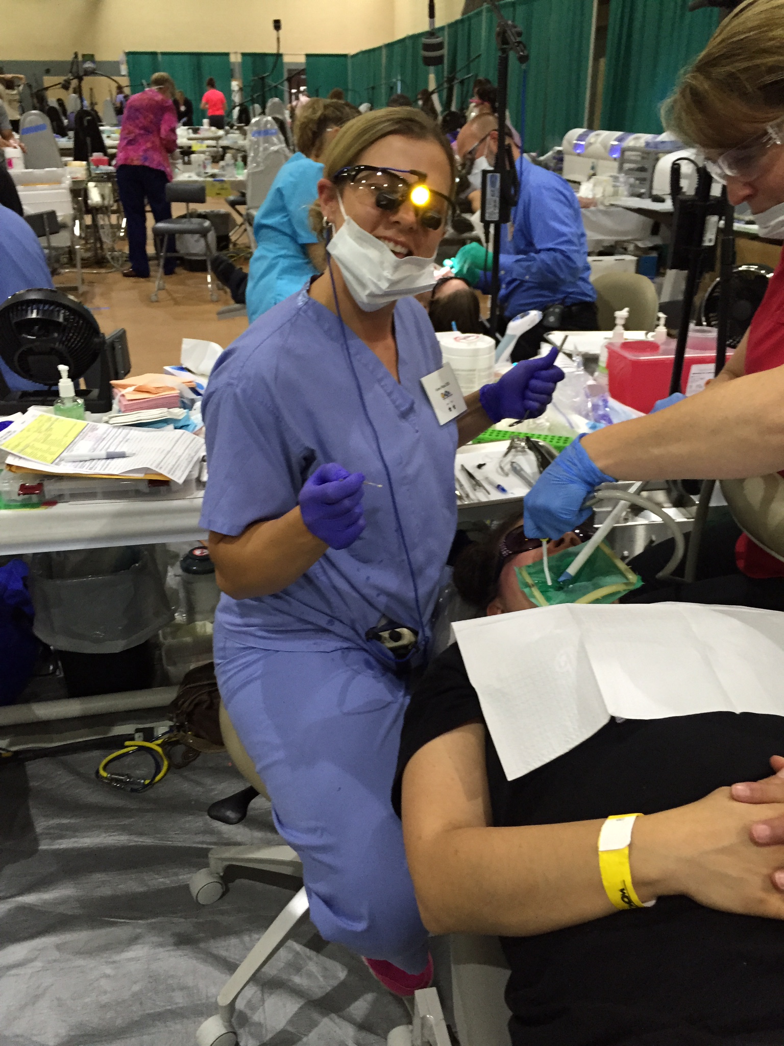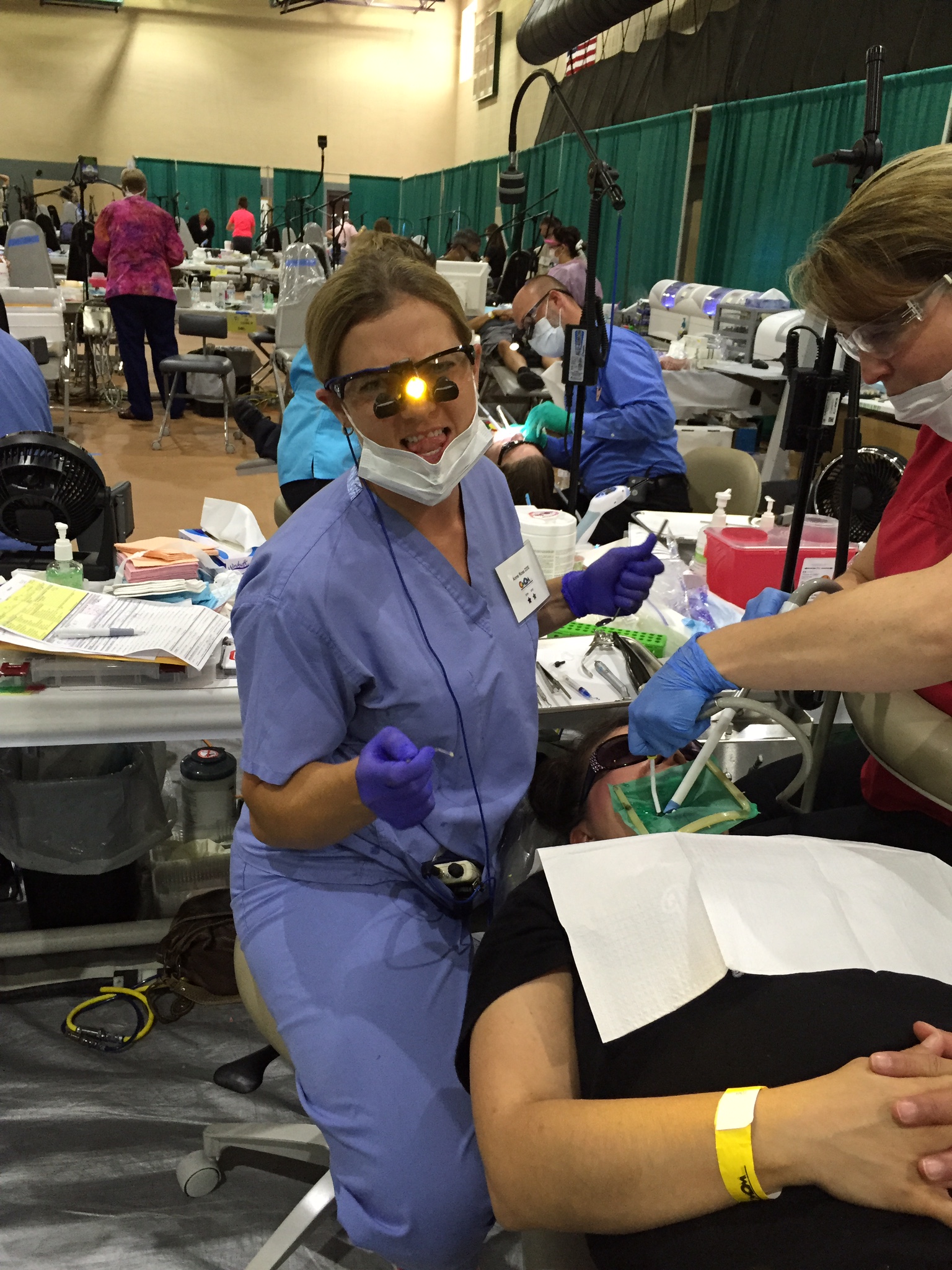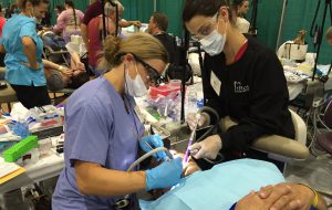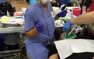 If you have never heard about COMOM, it is a truly special event. Dentists, hygienists, dental assistants, front desk personnel, and even non-dental people volunteer their weekend to provide dentistry to those in need. The treatments range from cleanings, dental fillings, root canals, and crowns all the way to extractions and dentures and partials. Dr. Ross, along with her two dental assistants, Sandy and Natalie, were in the restorative section of the program, which means we provided dental fillings. Kathleen who is the front desk person at Ross Family Dentistry worked in the checkout area at COMOM.